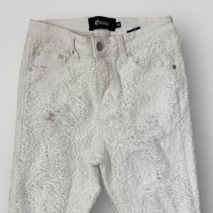 Guapi White Lace Overlay Distressed Flared Jeans – Size 28 L37