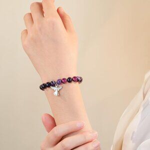 Features: Beautiful 8mm natural stone beads on a sturdy bead chain, featuring a lovely stainless steel angel charm. Hypoallergenic and fade-resistant, with a lobster claw clasp for easy wear.