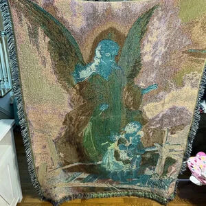 Guardian Angel & Children Crossing River Tapestry Throw 54"×48" Cotton Blend