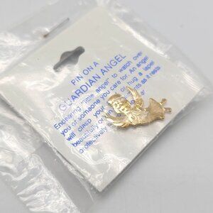 This gold-toned guardian angel lapel pin is designed as a thoughtful gesture, symbolizing protection and care. It is perfect for adorning jackets or bags, adding a touch of heartfelt sentiment. Packaged securely, it makes for a meaningful gift or a personal keepsake.