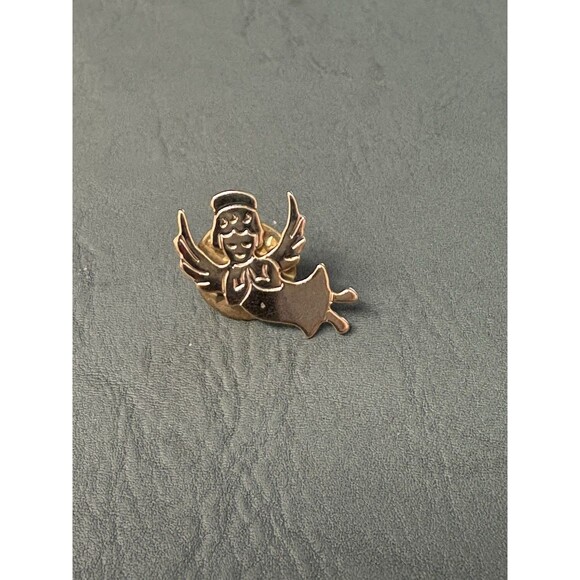 Guardian Angel Praying Gold Tone Vintage Lapel Pin. Condition is Used.