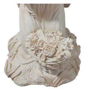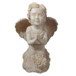 This guardian angel statue kneels with hands clasped in prayer, exuding serene grace. It holds a basket of flowers, symbolizing peace and remembrance. Crafted from durable resin, it transcends seasons, making it a steadfast presence in any space. Its intricate detailing invites reflection and adds a touch of divinity.