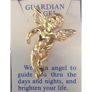 Guardian Angel Tie Tack Cherub Vintage Lapel Pin Religious Gold tone Made in USA