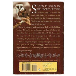 In the enchanting realm where the Barn Owls dwell, young Soren finds himself ensnared in a perilous adventure. Abducted into a dark canyon, he must unravel the mysteries within and seek freedom. This tale of courage and friendship unfolds as Soren and his companions, Twilight and Digger, embark on a quest to save their world. • Author: Kathryn Lasky • Paperback Edition • Published in 2004 • ISBN: 0-439-40557-2 • Pages: 240 • Series: Guardians of Ga'Hoole Slight crease on the front cover.