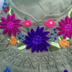 Guatemala Hand Embroidered Short Sleeve Green Tunic XXL