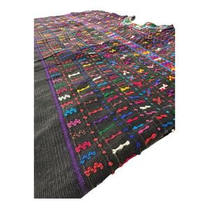 This product is a handmade Guatemalan Huipil poncho designed for women, featuring intricate embroidered floral patterns. Made from cotton in a vibrant multi-color palette, this boho 80s vintage top is one size fits all, embodying a unique and traditional Latin American style. Imported from Guatemala, this poncho offers a blend of cultural heritage and contemporary fashion for a standout statement piece in any wardrobe.