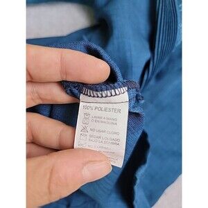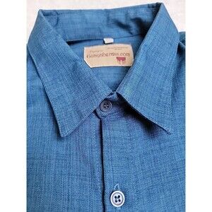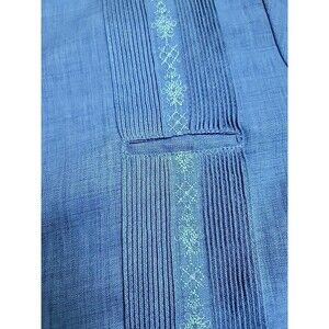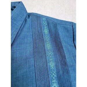 Guayaberass Shirt Mens 40 Button Dark Blue Teal Textured Embroidered Cigar