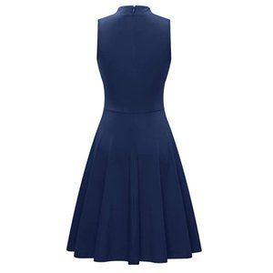 Excellent condition - you might mistake it for being brand new! Never worn. Navy blue. Choker, v neck, sleeveless, midi length, two side pockets and back zipper. Vintage and slim fit design. Perfect for any party, date, graduation, dinner, or work.