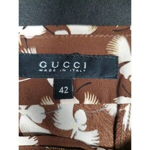 Gucci 100% Silk Skirt Brown Floral Printed Paneled Mini Skirt Size 42/ 6. Condition is Pre-owned. Shipped with USPS Ground Advantage.