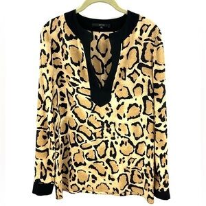 Gucci 100% Silk Tunic Top IT 42 US 6 Size Medium Long Sleeve Animal Print Blouse