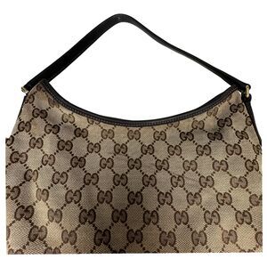 Gucci 169947 Monogram Hobo Dark Brown Canvas Shoulder Bag READ DESCRIPTION