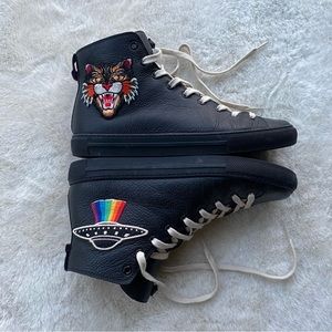 Gucci 17-18SS UFO Angry Cat Wappen Leather High Cut Sneakers Black Size 7 1/2