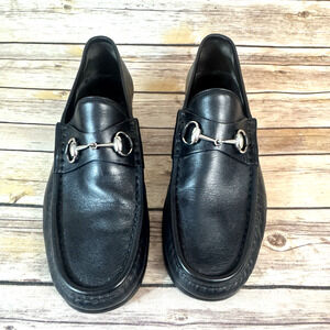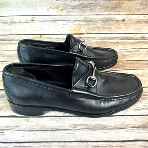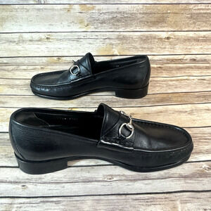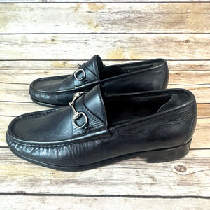 Gucci 1953 Mens Black Italian Leather Silver Horsebit Slip On Loafers Size 10.5D