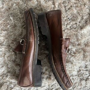 Gucci Lug brown leather loafers featuring silver hardware. Perfect for a classic look. Original from probably 20 years ago but still plenty of wear and could be great condition after cobbler the bottom are in great condition were not worn a lot. ***polish and perfect condition!!!!