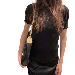 Gold-Tone Hardware. Chain-Link Shoulder Strap. Leather Lining & Single Interior Pocket