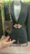 Gold tone metal logo closure
