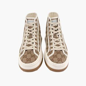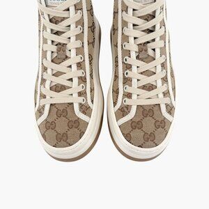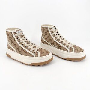 Gucci 1977 Tennis Platform Sneakers Size 39 US 9 High Top Beige GG Monogram