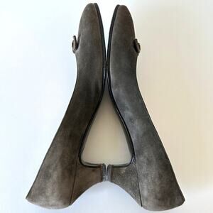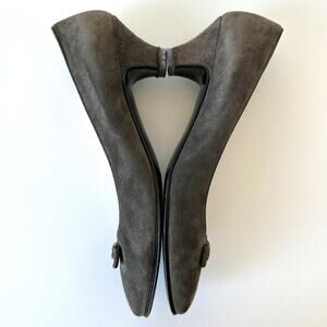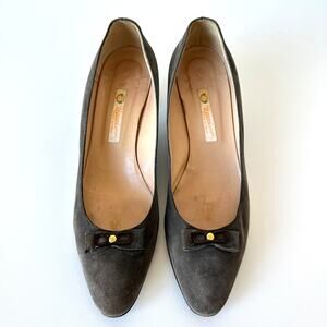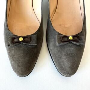 Gucci 1983 Vintage Grey Suede Bow Logo Kitten Heel Size 38 AA