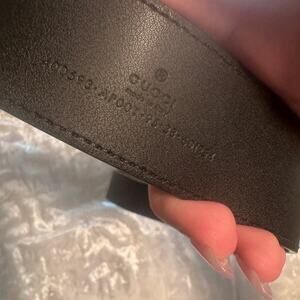 Elegant Gucci belt. Features iconic gold GG buckle. Sleek black leather design. Size 95. Purchased online at Gucci.