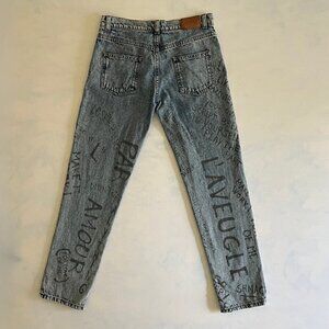 -Details: straight leg denim jeans, zip and button closure, five slit pockets, in excellent condition