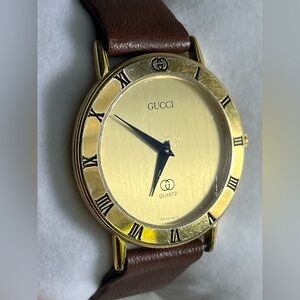 Beautiful and authentic Gucci 3000M brown cream gold dial men’s watch.