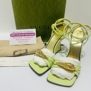 Gucci 37/ US 7 Two-Toned Dora Embellished Crystal Wedge Green Sandals NIB $1,250