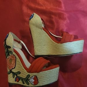 Reposhing this item I purchased from @blondedee. These are absolutely gorgeous and make your feet look pretty & dainty but if it weren't for this little toe, this would be perfect. These platforms fit true to size; sadly I need a size larger to accommodate Becky the bunion.