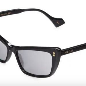 Gucci's sunglasses are designed in a futuristic cat-eye silhouette that feels like an update on classic rectangular styles. Made in Italy with mirrored UV-protected lenses and a dramatically angled brow bar.