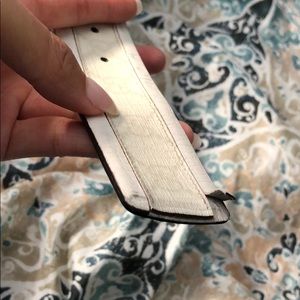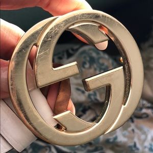 I have an off white mens GUCCI belt for SALE, serious inquiries ONLY! This is very authentic, the serial # is in the picture. There is 5 small holes for the belt and the middle hole is stretched out along with the one next to it. Please take a careful look of the photos!!! This belt shows usage on the belt (the off white has a few dark marks) The GUCCI symbol has scratches, I’m not going to sugar coat that this belt is even brand new. I’ve had this belt since 2012, got it in Hawaii. No papers!