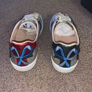 New Ace Silver Metallic Leather Ace Embroidered. Original box and duster bags for sneakers.