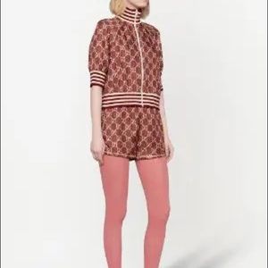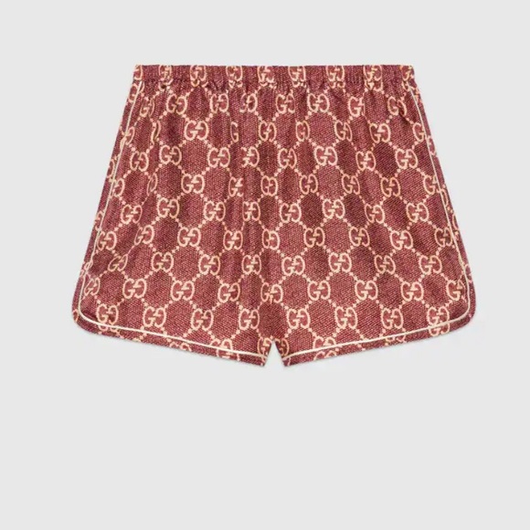 The GG Supreme pattern gets reinterpreted into ready-to-wear silhouettes crafted from refined fabrics, for an unexpected take on activewear. Here, the emblematic motif animates silk twill shorts enhanced by colorful lamé stripes down the sides. The elastic waistband adds a sporty feel.
