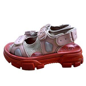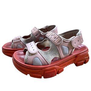 Gucci 6.5 Pink Orange Leather and Mesh Aguru Sandals Chunky Lug Sole Size 36.5