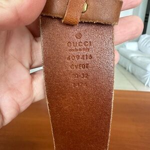Authentic Gucci GG belt with antique gold hardware. The belt has a gradient brown/dark brown color. Some wear on leather rim and scratches and normal creasing. Has a rugged look. Comes with dust bag. Fits a size 4-6