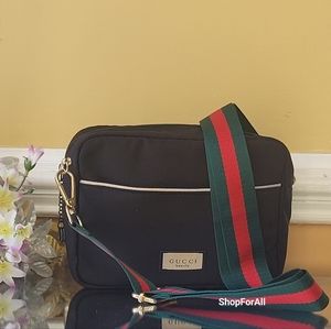 gucci pouch convertible shoulder bag or crossbody with non branded adjustable belt exclusively made from Gucci beauty collections