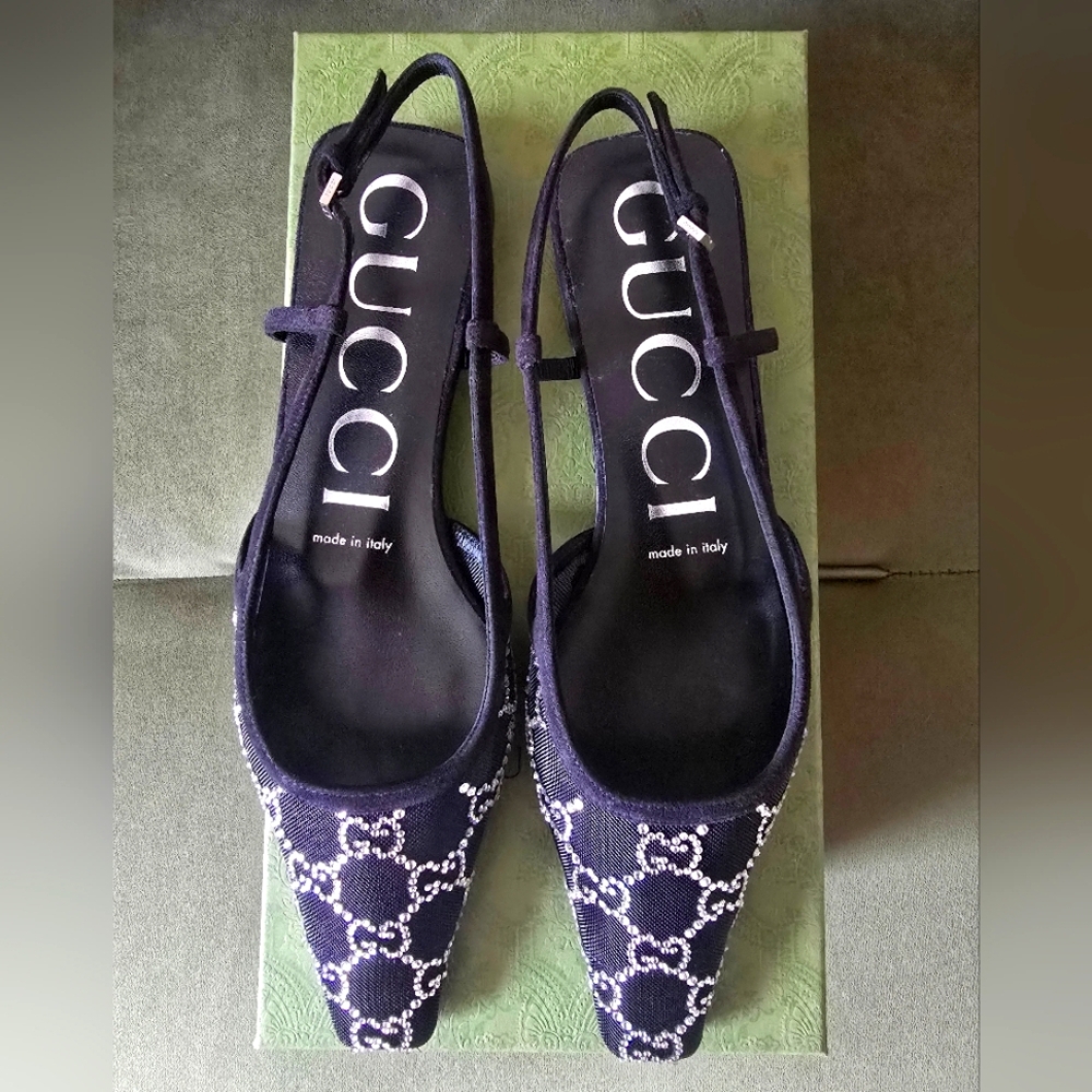 NIB Gucci rhinestone slingback flats.
