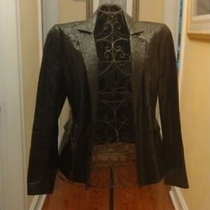 Crushed leather Women's Gucci blazer with button down front. Excellent condition. Size 40. This is a signature piece.