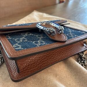 Gucci shoulder bag Gucci Dionysus Super Mini Denim Crystal Bag Denim, Leather Comes with original Box, Dust bag Size (HxWxD) 10cm x 16.5cm x 45cm / 3.93"' x 6.49" x 17.71"'
