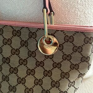 GUCCI Beige Pink Gold Hardware GG Canvas Leather 120840 Tote Bag Shoulder Bag. Great condition