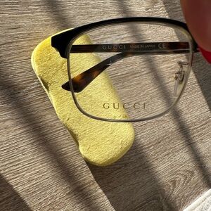Case: The provided yellow velvet case is a signature accessory often included with authentic Gucci eyewear.