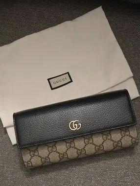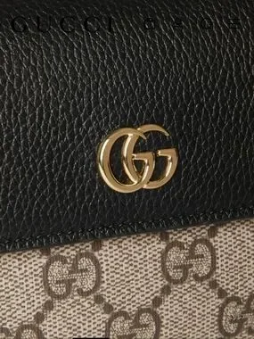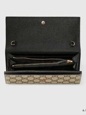 NEW! The GG Marmont small leathergoods collection presents contemporary silhouettes that blend different colors and materials in one style. This wallet on chain is crafted with leather and GG Supreme, complete with the archival Double G logo.