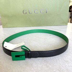 Style: Black Leather Belt with Green G Buckle