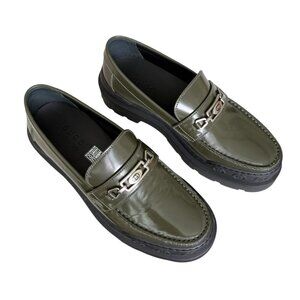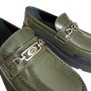 Gucci 761519 Millenial Ribot Mocassin Green Leather Loafer shoe sizes G 6.5, 8.5