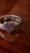 Stylish Gucci ring featuring a heart motif. Crafted in metallic silver tone. scratches all around
