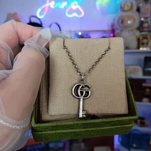 Gucci 925 Silver Key Motif Double G Logo Charm Necklace Men’s Women’s