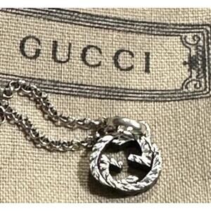 Gucci 925 Sterling Silver Textured Interlocking G Necklace