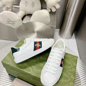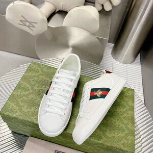Gucci Ace Bee Embroidered White Leather Sneakers
