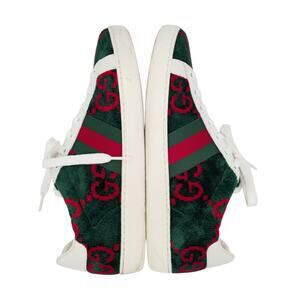 Gucci Ace GG Monogram Sneaker Size 38.5 US 8.5 Green Red Velvet Web Stripe Shoe