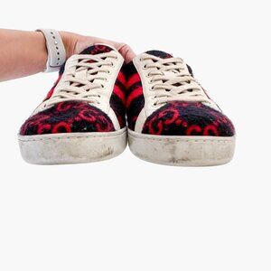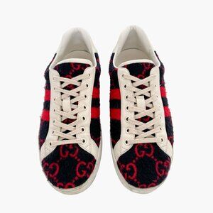 Gucci Ace GG Sneakers EU 7 US 7.5 Navy Blue Red Wool Lace Up Low Top Shoes