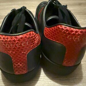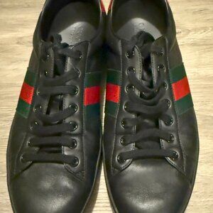 Gucci Ace Sneakers - Black Leather - Red, Green (Gently Used)