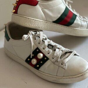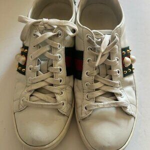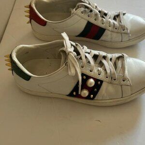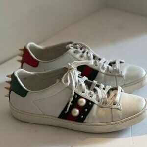 Gucci Ace Studded Whites Shoe Size 35.5 US 5.5 431887 Calfskin Webbed